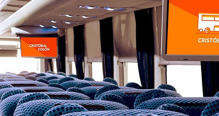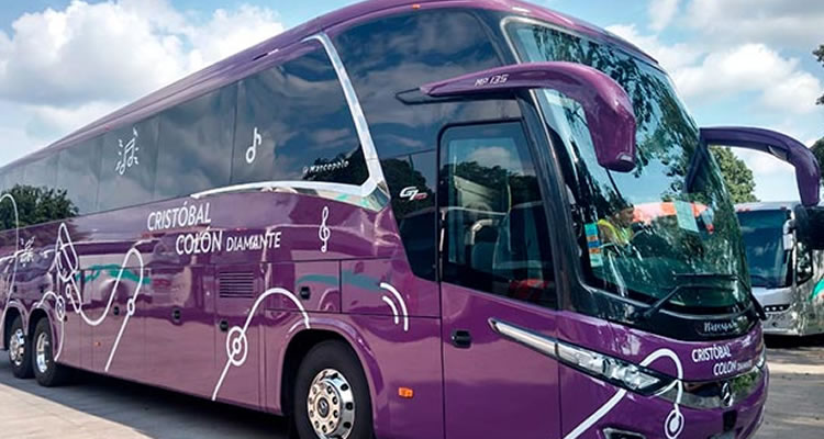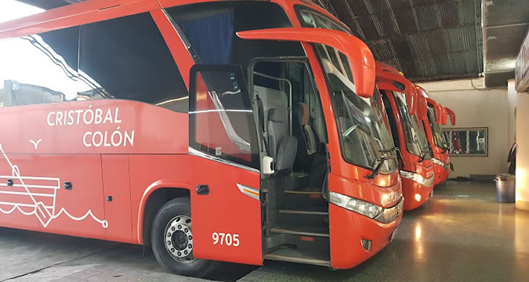 This is a Shared Tourist Bus for 50 Passengers with CRISTOBAL COLON from San Salvador to Managua city