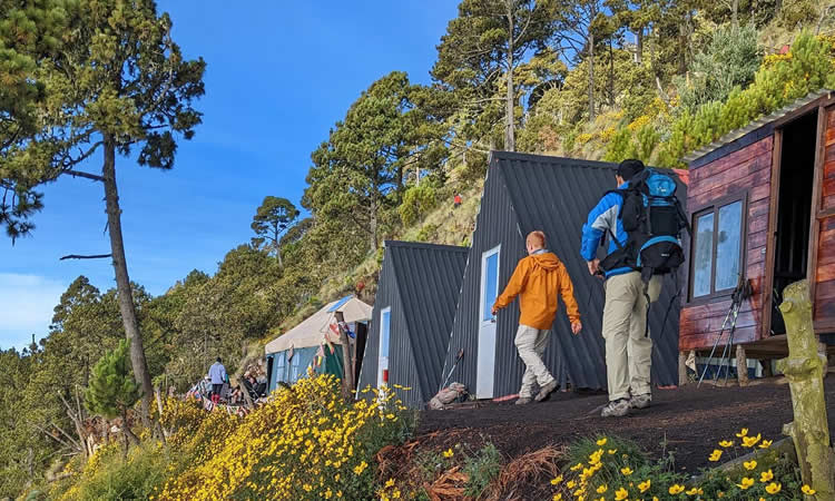 Join us on our 2 day volcano hike to Acatenango. The team has developed a tour package so you can get the best experience on your trip to Guatemala. We have something in mind for the average person to be able to hike 3.5 hours up and 2 hours down the Volcano and be able to capture one of the most incredible volcanoes on earth. Climbing to 3,976m is no easy feat but we have a service that will help you get there in every step of the way. We have you covered in every aspect from food to gear, camp, transportation and more. BASE CAMP FACILITIES: We guarantee to provide you with the best base camp facilities on the volcano. We have built A frame cabins as shelter for eruptions and weather. Stay warm with the cold temperatures and strong winds this volcano presents. In case of an eruption with the magnitude of the one in June 2018, you can remain safe inside. In addition to the cabins we also provide you with a dinner room and a comfy chair fire pit with a view to Volcano de Fuego and the stars. .