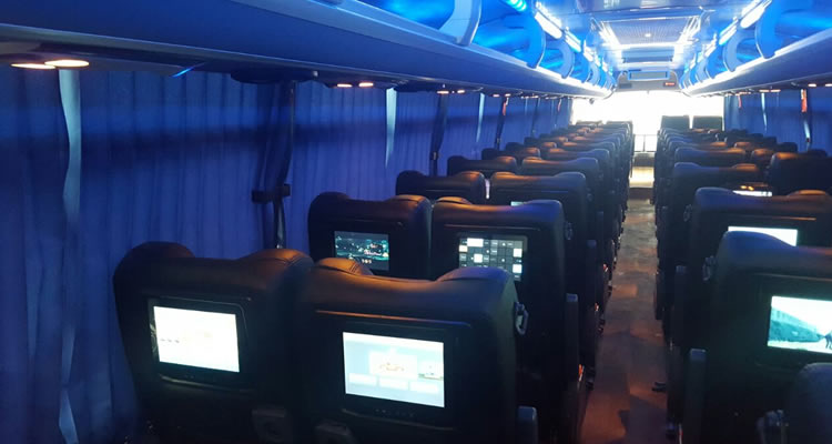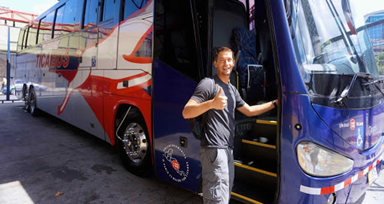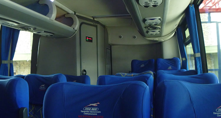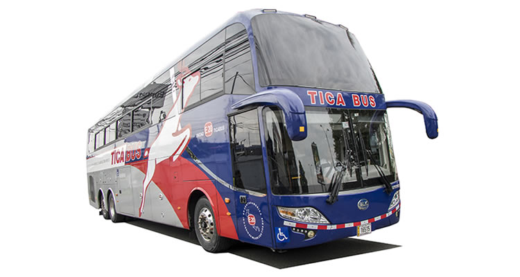 Este es un Autobuses turistico de TICA BUS o Cristobal Colon con 50 asientos reclinables desde Tapachula a Guatemala ciudad.